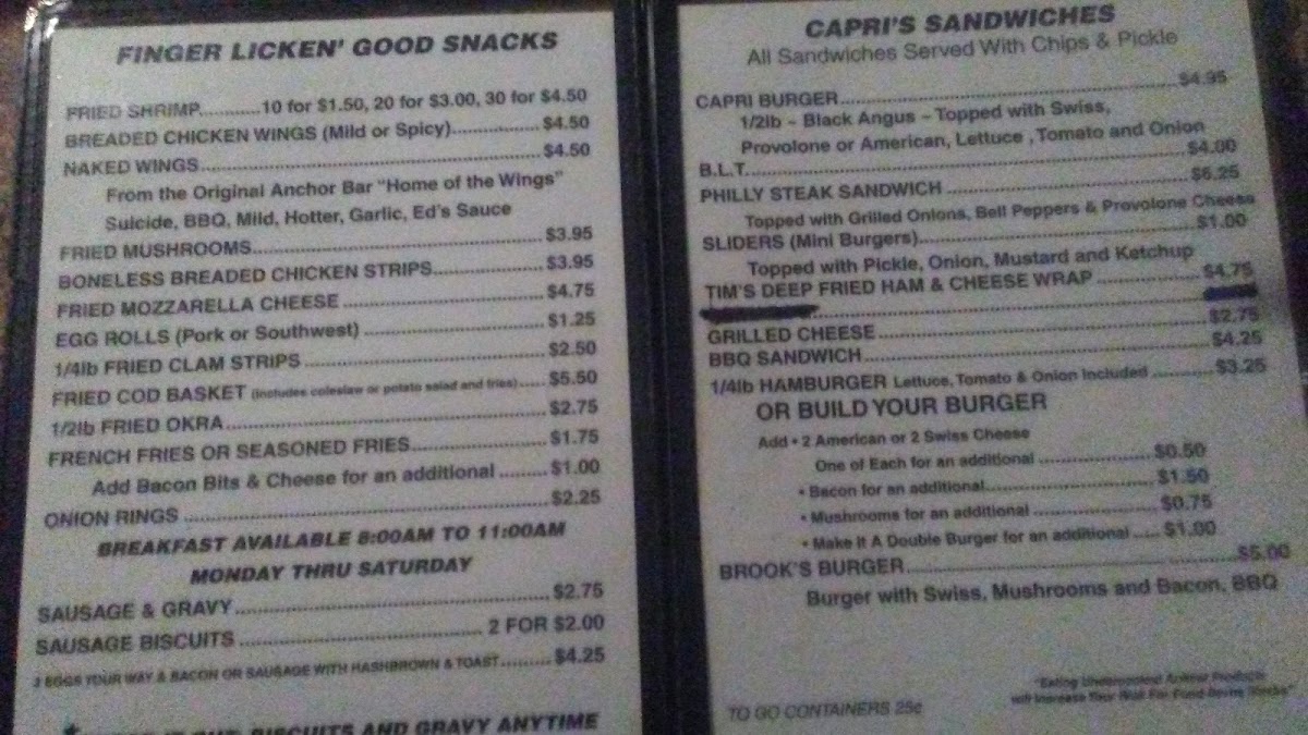 Introducing the menu at Isle of Capri Lakeland, a hidden gem located at 541 S Combee Rd in Lakeland, Florida. This vibrant bar offers a delightful fusion of flavors and friendly service that keeps customers coming back for more. Take a bite into their renowned Capri burger, a hefty and juicy creation that has garnered rave reviews for its exceptional taste and value.